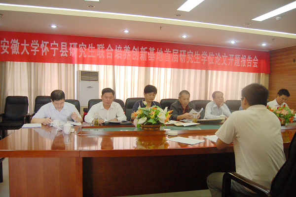 本网讯(何 平)10月8日,研究生院副院长毛德权、研究生院正处级调研员汪兴海、工商管理学院副院长杜鹏程、经济学院副院长李光龙等一行13人利用假期专程赶赴怀宁,为首批赴怀宁基地10名研究生举行学位论文开题报告会。