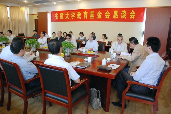 孙献忠首先感谢有关企业一直以来对教育基金会的大力支持和帮助,并就教育基金会成立一年来各项工作的开展情况和取得的成果向与会同志作了详细介绍。他指出,教育基金会是加强学校与社会联系的纽带和桥梁,是发挥社会力量促进教育发展的重要举措。安徽大学教育基金会自成立以来,在争取海内外工商界、社会团体、知名人士和校友对学校的支持和帮助,促进学校教学质量、科技水平的提高,奖掖教学、科研工作中的优秀教师,鼓励优秀学生脱颖而出,资助困难学生圆满完成学业等方面发挥了重要的作用,希望社会各界继续支持教育基金会的成长和发展。