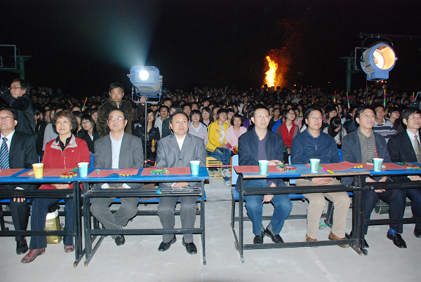 本网讯(记者 冯华周)11月1日晚,江淮学院举办歌颂祖国暨2009迎新篝火晚会。副校长杜先能,纪委书记胡小松,相关部门负责同志与江淮学院师生一起观看了晚会。