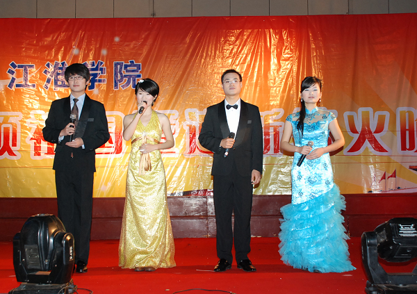 杜先能代表学校致词并预祝晚会圆满成功。江淮学院院长张胜义宣布晚会开始。篝火被点燃,烟花照亮了夜空。晚会在艺术团大合唱《保卫黄河》中拉开序幕,节目异彩纷呈。各路好手纷纷登台,共表演了大合唱、独唱、朗诵、武术、民族舞蹈、印度舞蹈、小品、街舞等24个节目。晚会以歌颂祖国为主线,充分展示了学生的爱国之心和青春风采。最后,晚会在大合唱《祝福祖国》歌声中圆满落下帷幕。