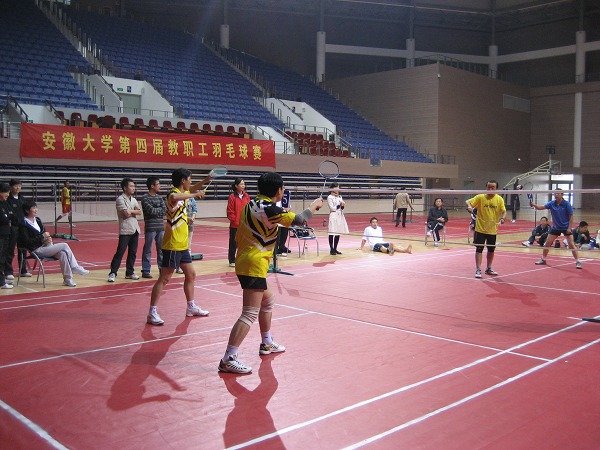 本网讯(钟 兵)11月7日至8日,我校第四届教职工羽毛球团体赛在磬苑校区体育馆举行。本次比赛由校工会主办、教工羽毛球协会协办,来自各部门工会的21支代表队参加了比赛。经过近两天的激烈角逐,外语学院工会代表队夺得冠军,计算机科学与技术学院工会代表队获得亚军,管理学院工会代表队获得第三名,机关第二分工会代表队与体育军事教学部工会代表队并列第四名,获得五至八名的依次是:机关第三分工会、附属学校、机关第四分工会和哲学系工会代表队。