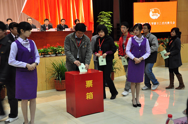 下午,举行第二次全体会议,通过了大会选举办法及总监票人、监票人、总计票人、计票人名单。经过民主投票,与会代表选举产生了校团委第十三届委员会。