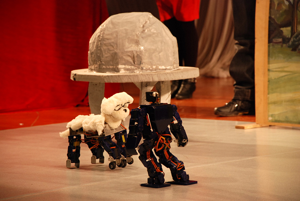 周星驰有七仔,我们同学有哈勃。哈勃是一只外星犬,会做很多高难度动作,并与他的主人建立了深厚的友谊,这就是本次大赛的亚军“梦七队”带来的机器狗哈勃和机器人小迪。