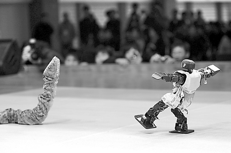 猪八戒与嫦娥结连理,奥特曼打小怪兽,外星神犬跳太空舞……昨日,在安徽大学上演了一场别开生面的机器人剧场赛。造型各异的机器人时不时露两手展现好身手,演绎出一段段或逗人开怀或发人深思的故事。原来,外表冰冷的机器人也可以这么可爱有趣。
