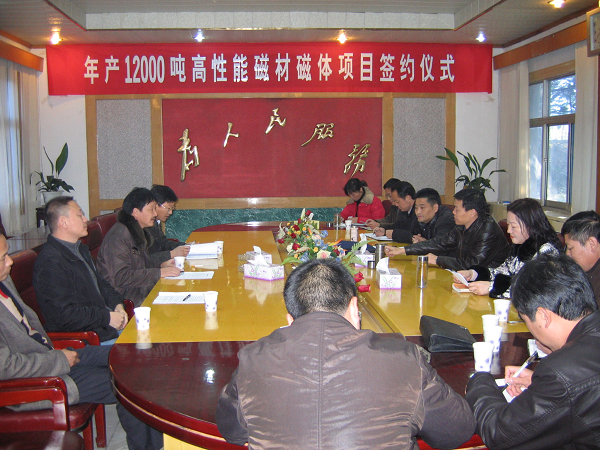 本网讯(物理与材料科学学院)11月30日,由我校磁性材料安徽省工程技术研究中心技术支持的安徽中磁高科有限公司投资3000万、年产12000吨高性能磁材磁体项目签约仪式在霍邱县人民政府会议室隆重举行。