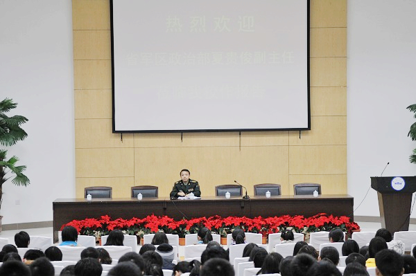 本网讯(新闻中心网宣办记者邱杨 鲍晓明)12月8日下午,省军区政治部副主任夏贵俊应邀来我校讲学,在磬苑校区博北d101为新闻中心通讯员、学生记者和国防生做了题为《艰苦奋斗是通往成功的路》的学术报告。报告会由校党委副书记李仁群主持。