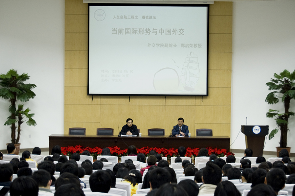 郑启荣的报告,从世界金融危机、国际格局和力量对比发生的重大变化、主要大国对外战略的重大调整和国际政治格局的变化等4个方面解读了当前国际形势的特点,剖析了中国外交面临的复杂环境。