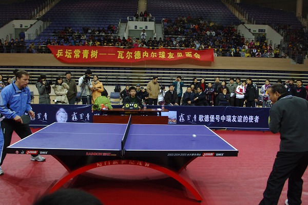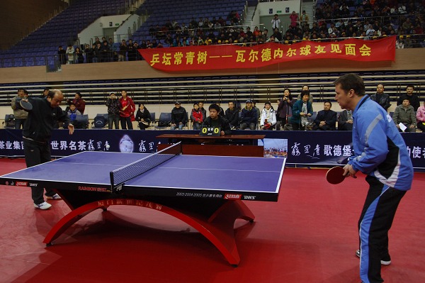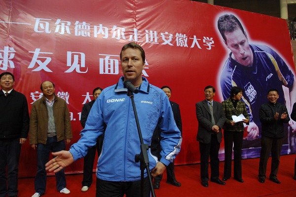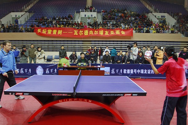 本网讯(新闻中心网宣办记者 纪 云 鲍晓明)12月19日上午,“乒坛常青树”瓦尔德内尔球友见面会在磬苑校区体育馆举行。当身着蓝色运动服的瑞典乒乓名将瓦尔德内尔走进体育馆时,现场爆发出热烈的掌声。