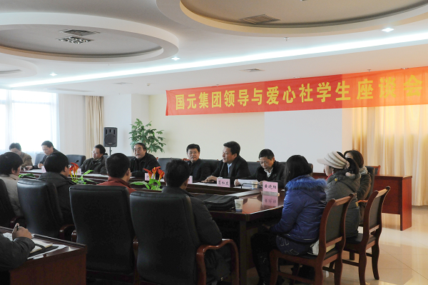 本网讯(学生处 周乾坤)1月12日下午,安徽国元控股(集团)有限责任公司总经理、安徽国元信托有限责任公司董事长过仕刚一行来我校与国元爱心社同学亲切座谈。校党委书记、校长黄德宽,校党委副书记李仁群以及国元爱心社的同学参加了座谈。座谈会由学生处处长顾广玲主持。