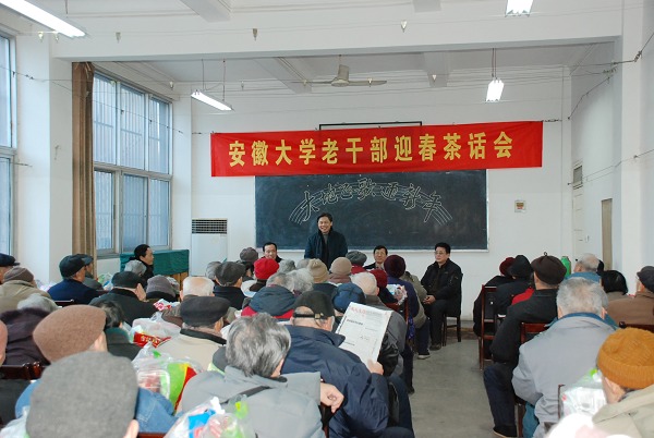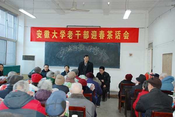 校党委书记、校长黄德宽,校党委副书记李仁群与老同志共聚一堂,辞旧岁,迎新春。茶话会由离退休干部处党总支书记樊晓泉主持,离退休干部处处长樊晓东在会上传达了全省老干部工作会议精神。