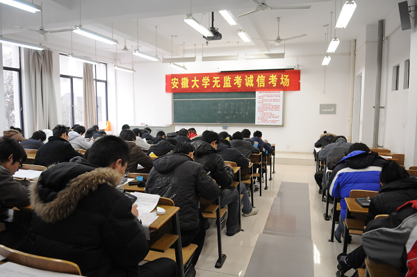 本网讯(网宣办记者毛亚美 鲍晓明)“这是一次特殊的考试,但我还是以一种平常的心态来对待的。不过能成为学校首个试点班级,我们都感到很荣幸。”刚刚结束考试的大一学生王刚这样对记者说。就在1月22日上午,09级化学类一班的王刚和他的同学们参加了无人监考诚信考试,答题、交卷、离场,一切都是在没有监考老师的情况下进行的。这是我校首次开展无监考诚信考试。