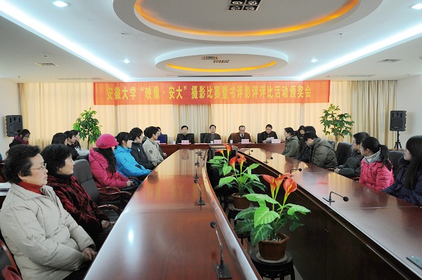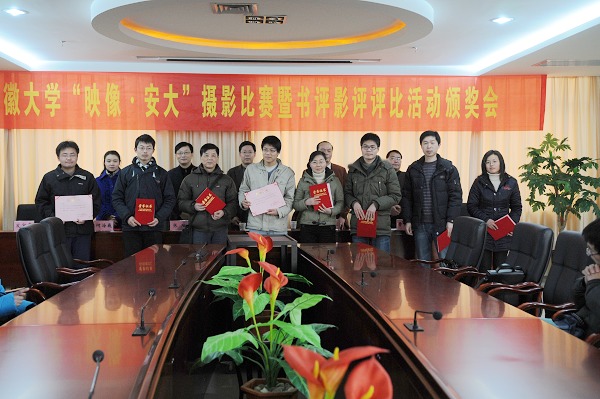 本网讯(网宣办记者蔡小晓 鲍晓明)1月25日下午,由党委宣传部(新闻中心)主办的“映像·安大”摄影比赛暨书评影评评比活动颁奖会在磬苑校区办公楼a501举行。党委宣传部部长、新闻中心主任周飞,评委代表中文系资深教授黄书泉、新闻传播学院广电系主任张阳、新闻传播学院青年教师何海巍等出席颁奖会并为获奖师生颁奖。获奖师生和宣传部全体工作人员60余人参加了颁奖会。颁奖会由校报编辑部主任吕虹主持。
