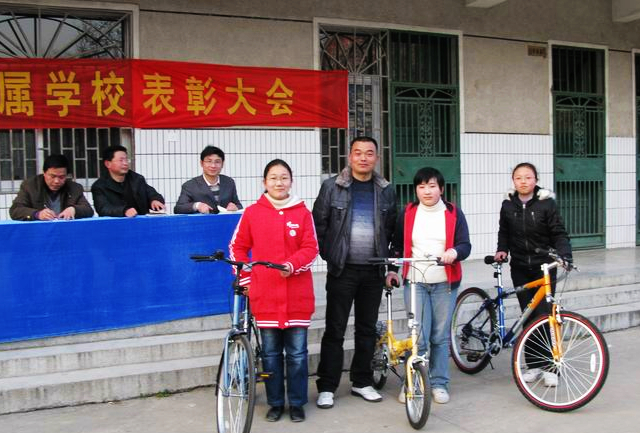 本网讯(鲁义香)3月12日下午,附属学校隆重举行2009至2010学年第一学期优秀学生颁奖及表彰大会。受到表彰的214名同学中,韩天娇等75名同学荣获优秀学生奖学金及证书,陈飞等31名同学获“励志奖”奖学金及证书,许嘉禾等108名同学荣获“学习进步突出奖”荣誉证书;初中部七、八、九三个年级成绩排名第一的韩天娇、贾妞、孙若男同学,获得了捷安特自行车合肥地区销售公司嘉奖的自行车各一辆。