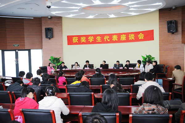 本网讯(新闻中心网宣办记者 鲍晓明)对于2009年获得各类表彰奖励的学生集体和个人,学校一改往日开表彰会的做法。3月17日下午,校领导与获奖学生代表座谈会在磬苑校区办公楼b204举行。校长程桦、党委副书记李仁群亲临现场,倾听同学们的成长故事与心路历程,并就加强和改进学校工作与同学们面对面交流。