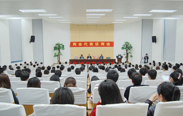 吴春梅向同学们介绍了全国政治协商会议的情况以及她个人的参会感悟。她说:我参加了三次政协会议,但这一次拿到政府工作报告的时候,还是按捺不住内心的激动。报告将教育、文化、民生单独列出来,足以证明政府的重视程度。报告指出,文化和教育是一个国家的软实力,我国实现现代化离不开教育和文化,文化是一个民族的精神和灵魂,是一个国家发展决定性的力量。中华文化不曾中断,儒家文化更是对周边国家起到了深远的影响。温总理在答记者问的时候讲到“不仅要把蛋糕做大,还要分好”,“公平、正义比阳光还要有光辉”。政府强调要反腐倡廉,一切政府工作都要阳光运行。2010年,面对大学生就业、贫富差距、通货膨胀这三大压力,政府将转变发展方式,调整结构,力避“唱高调,走形式”。同时还强调道德的力量,开展好对大学生的德育工作。