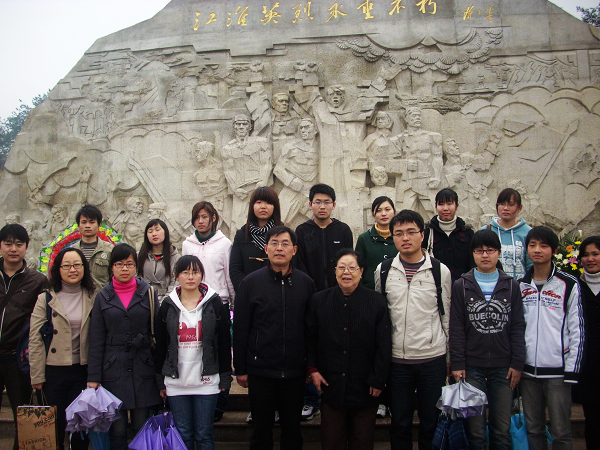 颁奖典礼开始前,获得本届奖学金的10位同学和邵成龙、王耐霜等4位上届奖学金获得者与欧远方先生的亲友一起,冒着霏霏细雨,祭奠了长眠在这里的欧远方先生。