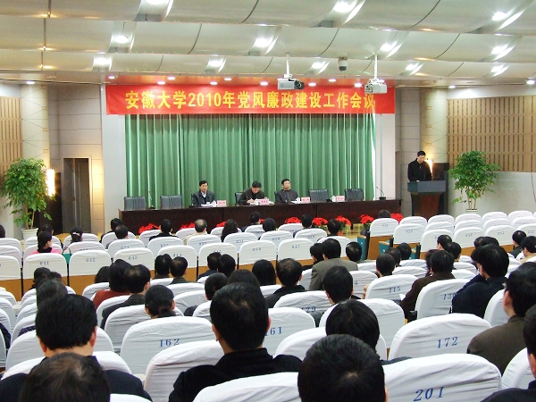 校党委书记黄德宽就做好2010年党风廉政建设和反腐倡廉工作发表讲话。他说,2010年是我校各项教育事业改革与发展的关键一年,抓好反腐倡廉建设,意义重大。学校广大党员干部特别是领导干部,要深刻认识高等学校反腐倡廉建设的重要性,切实增强使命感和责任感,对照教育部部长袁贵仁提出的“七个坚持”“七个严禁”“十六个不准”的规定,严格要求自己;要模范执行《中国共产党党员领导干部廉洁从政若干准则》,在实际工作中,做廉洁自律的表率,做执行学校各项制度的表率,做自觉接受监督的表率。他强调,学校各级党政领导班子要认真执行党风廉政建设责任制,承担起推进反腐倡廉建设的政治责任和领导责任,认真贯彻落实上级党委和校党委关于党风廉政建设的部署和要求,加强对党风廉政建设情况和领导班子、领导干部廉洁从政情况的监督检查。各单位党政主要负责人作为党风廉政建设第一责任人,要率先垂范,进一步强化责任意识,对反腐倡廉建设负总责,做到重要工作亲自部署、重大问题亲自过问、重点环节亲自协调,同时要以身作则,严格遵守领导干部廉洁自律的各项规定,自觉、主动地接受广大教职工的监督。