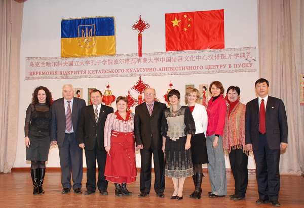 波尔塔瓦市教育局副局长阿基尼娜,波尔塔瓦消费大学校长涅斯图尔、副校长阿尔焦缅科,孔子学院中方院长石洪生、乌方院长巴伊纳扎罗夫,波尔塔瓦4所中学的校长,中国语言文化中心的首届汉语培训班学生,波尔塔瓦消费大学各院(系)的师生代表,波尔塔瓦其他高校及4所中学师生代表共计500多人出席了典礼。波尔塔瓦州和市电视台对于典礼进行了报道。