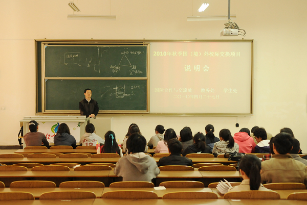 本网讯(新闻中心网宣办记者乔羽佳 熊裕娟)4月27日下午,校国际合作与交流处、教务处和学生处在磬苑校区博学南楼d209举办2010年交换生项目说明会,帮助同学们了解学校关于交换生学习的管理规定,掌握报名、选拔及派出的有关程序。