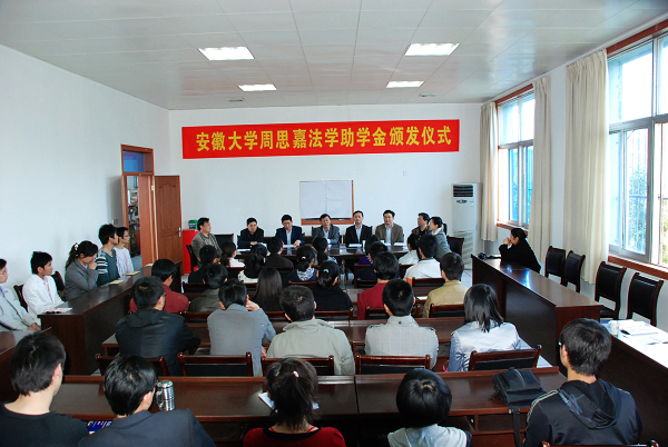 校党委副书记李仁群,助学金设立者周世虹,研究生院、学生处、法学院负责同志,与获资助同学一起出席了在龙河校区理西楼法学院会议室举行颁发仪式。仪式由法学院党委副书记宋玉茹主持。