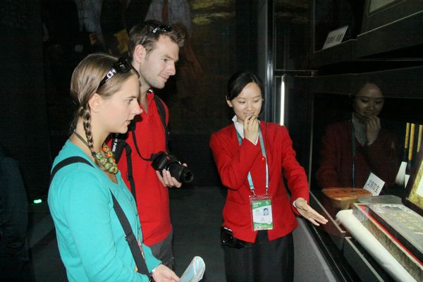 胡忠浩告诉记者:“在接待的几十个国家的游客中,大多数人都听说过安徽的黄山。很多游客还对馆内的石鼓感兴趣,经过时都会用手敲击几下。要知道,这石鼓在古徽州是地位和财富的象征,而不是乐器。”彭玉洁笑着说:“有一次,三个爱尔兰人来到安徽馆,对很多展品饶有兴趣,还问到很多奇怪的问题,比如,为什么安徽馆有这么多工作者是漂亮的小伙子啊?”