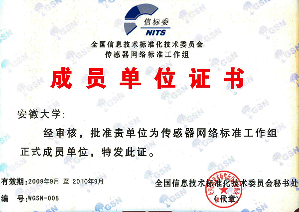 本网讯(计算智能与信号处理教育部重点实验室)5月12日,中国传感网络标准化论坛暨传感器网络标准工作组第五次全体会议在苏州召开。我校计算智能与信号处理教育部重点实验室常务副主任胡艳军出席会议,并获颁全国信息技术标准化技术委员会传感器网络标准工作组成员单位证书。