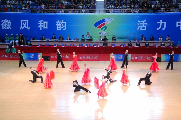 在开幕式结束后举行的团体标准舞决赛中,安徽代表队获得一等奖,北京、辽宁代表队获得二等奖,湖北、四川代表队获得三等奖,山东代表队获得参与奖。