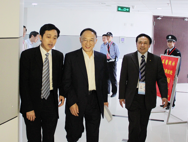 本网讯(新闻中心网宣办记者乔羽佳 摄影刘全)5月18日下午,团体拉丁舞决赛在磬苑体育馆举行。国家体育总局局长刘鹏、副局长冯建中,在副省长谢广祥,省教育厅副厅长江春,我校副校长杜先能,经济开发区党工委书记姚卫东等陪同下亲临现场观看比赛,并为获奖选手颁奖。