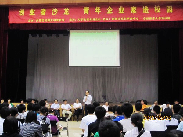 活动由校团委主办、凌云创业社承办、新徽商成长研究中心及合肥国家大学科技园协办。校基金会理事长、校党委原书记孙献忠,合肥高新区中小企业指导处处长谢良,经济学院新徽商成长研究中心常务副主任汪芹及10余名青年企业家应邀出席了本次活动。