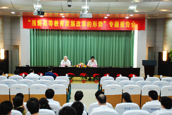 本网讯(新闻中心网宣办记者付倩倩 冯华周 倪思洁 王艳芳)5月29日下午,中国高等教育学会会长、教育部原副部长周远清应邀在龙河校区逸夫图书馆第一报告厅做了题为《当前高等教育发展改革的形势》的专题报告。