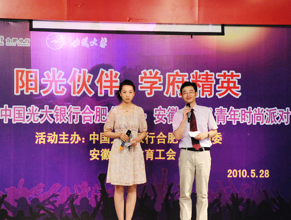 本网讯(钟 兵)5月28日晚,我校工会与中国光大银行合肥分行工会、团委联合举办的“阳光伙伴,学府精英”青年职工联谊活动在龙河校区教工活动中心举行。来自两单位的近130名青年职工欢聚一堂。活动分冷餐、游艺、舞会3个部分。大家通过自我介绍、趣味游戏、才艺展示等活动,促进了彼此了解,增进了友谊。活动在舞曲《友谊地久天长》的音乐中达到高潮,当时针指向22:00时,大家才依依不舍地离开。