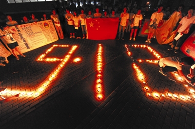 昨天晚上,安徽大学新校区,同学们举行“9·18”悼念活动,表达了“为中华崛起而读书”的壮志。本报记者艾虎/摄