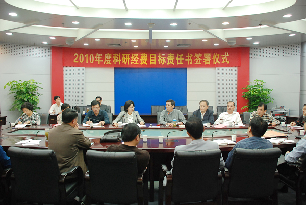 校长程桦出席签字仪式为获得2009年度科研组织奖的单位颁发奖状并发表讲话。他说,签订目标责任书并不代表刻意追求数值指标,也不是最终目的,而是希望借此在全校形成一种力争上游的态势,促使科研水平和实力有质的提高和飞跃。