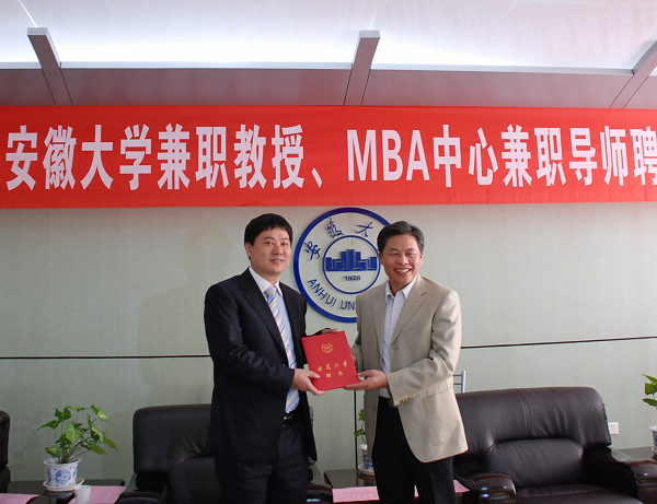 聘任仪式上,校党委书记黄德宽向严建文颁发兼职教授和MBA兼职导师聘书,高度评价合肥锻压集团在严建文带领下取得的骄人成绩,并希望他领导的合肥锻压集团继续支持我校建设,加强校企合作,共谋发展,实现双赢。严建文感谢我校的聘任,表示将尽最大努力支持学校和商学院建设和发展,做好兼职教授和MBA兼职导师的工作。MBA教育中心副主任李开、合肥锻压集团人力资源部部长孙卉代表双方签署了共建MBA研究生联合培养创新基地的协议书。