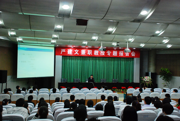 聘任仪式结束后,严建文在逸夫图书馆第一报告厅作了题为《从新兴产业化谈国家“十二五”规化》的报告。商学院部分教师、研究生、MBA学员及经济学院部分教师、研究生参加了报告会。