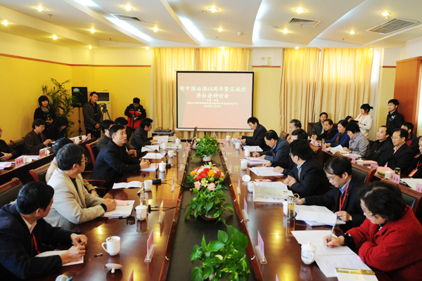 本网讯(新闻中心宣办记者张冠超 王怡萌 摄影王艳芳)11月20日,由我校淮河流域环境与经济社会发展中心主办的“新中国治淮60周年暨区域经济社会发展研讨会”在磬苑校区学术交流中心举行。副校长王源扩,吴春梅,省社科联副主席卜幼凡等出席研讨会并致辞。