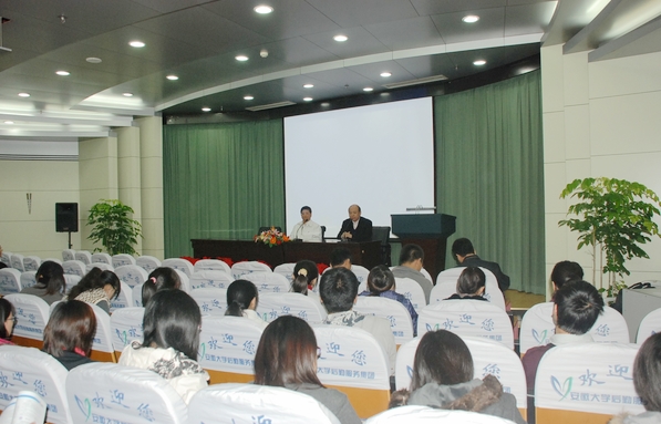 报告会在逸夫图书馆第二会议厅举行,由副校长王群京主持。