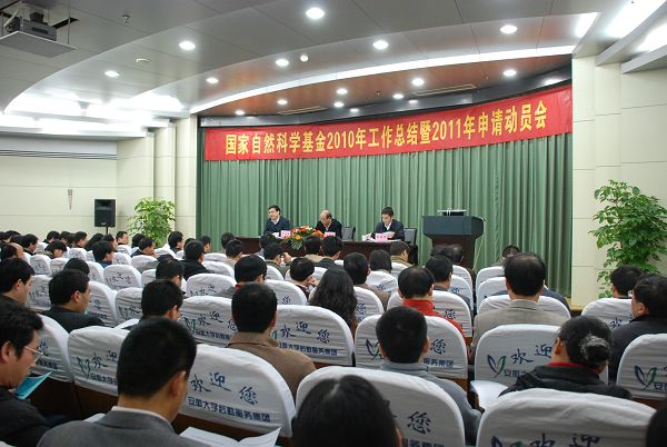 本网讯(新闻中心通讯员张 玲 摄影李 彬)12月2日,国家自然科学基金2010年工作总结暨2011年申请动员会在我校逸夫楼图书馆第二报告厅举行。会议对2010年我校申请国家自然科学基金情况做了汇报,并对2011年度的申请工作进行了部署。大会由副校长王群京主持,科学技术处、各院系主管科研负责人、相关科研人员150余人到会。
