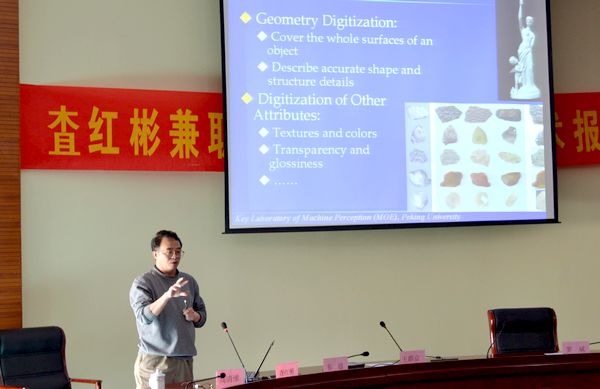 聘任仪式结束后,査红彬教授作了题为《3D Digital Technology and its Applications in Cultural Heritage》的学术报告。电气工程与自动化学院和计算机学院部分师生聆听了报告。