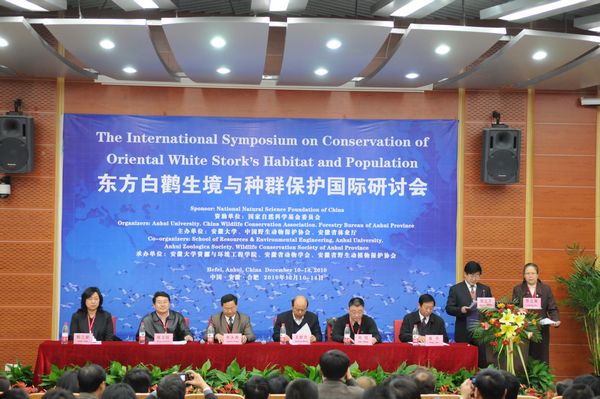 会议由国家自然科学基金委员会资助,我校与中国野生动物保护协会、安徽省林业厅主办,我校资源与环境工程学院、安徽省动物学会、安徽省野生动植物保护协会承办。来自中国、俄罗斯、韩国和日本的专家学者汇聚一堂、对东方白鹳的保护及其相关内容进行交流。