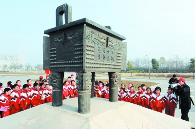 商学院志愿者陪伴下,游览安徽大学磬苑校区,感受大学的学习生活环境、文化氛围,点燃他们的大学梦想,激励他们为大学梦而努力。(一丁 摄)