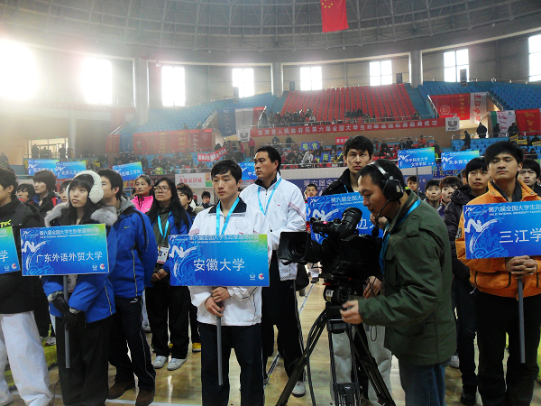 本网讯(刘 全)12月16日至21日,第六届全国大学生跆拳道锦标赛在江苏省东海县体育馆举行。我校跆拳道代表队获精神文明运动队称号,体育军事教学部教师吴永存获优秀教练员称号,物理与材料科学学院王晨同学获男子72kg级亚军,电气工程与自动化学院杨廷皖同学获男子78kg级第五名,商学院学生王展获优秀运动员称号。 据了解,本届比赛由教育部大学生体育协会批准、中国大学生跆拳道协会主办,来自全国82所高校的800余名大学生运动员分别在品势和竞技项目上展开了角逐。