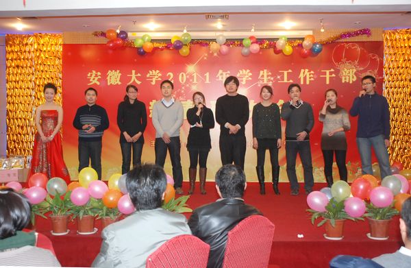 本网讯(新闻中心网宣办记者李彬 摄影冯华周)1月14日晚, 2011年学生工作干部新春联欢会隆重举行。校领导黄德宽,杜先能、李仁群、牛立文、许继荣、胡小松,相关部门负责同志,退休及转岗辅导员代表,与各院系党团书记、辅导员等出席了联欢会。