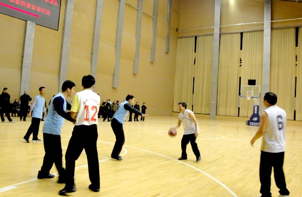 本网讯(钟兵)1月8日至9日,应阜阳师范学院的邀请,在校党委书记黄德宽、副校长杜先能的带领下,我校教授篮球队对阜阳师范学院进行了回访,阜阳师范学院党委书记魏捷、副院长刘学忠、党委副书记胡恩彪、副院长吴海涛接待了访问团一行。 在两天的访问交流活动中,两校篮球队共进行了三场友谊赛。访问期间,双方校领导还就两校共建事宜进行了深入交流,希望两校在教学、科研、学科建设方面不断加强交流,进一步促进学校建设与发展。访问结束前,黄德宽邀请阜阳师范学院再次来校访问,不断扩大交流领域和合作范围。