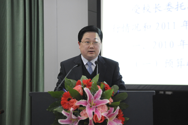 校长程桦代表学校作题为《深入学习实践科学发展观,加快推进高水平大学建设,奋力开创我校“十二五”发展新局面》的工作报告。