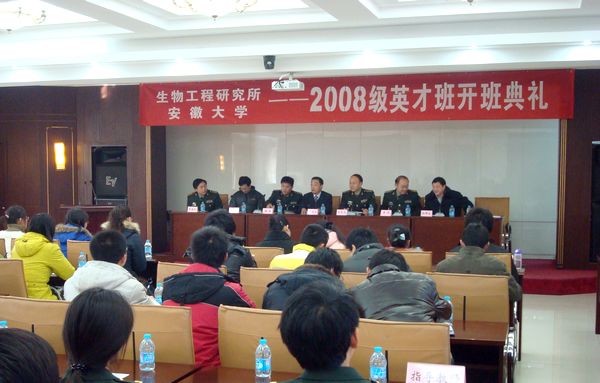 3月2日上午,军科院生物工程研究所为24名同学举行隆重的开班典礼,所领导王武选政委,曹诚、李德文副所长,我校副校长牛立文等出席了典礼。曹诚致欢迎词并介绍了双方联合培养工作的情况。牛立文对生物工程所领导为英才班创造的优越条件表示感谢,并指出科研训练和实习条件一直是高校的薄弱环节,利用科研院所良好的科研条件,共同培养创新性人才,是探索本科生培养体制机制改革的重要举措。王武选也表示,军民融合式发展、加大人才培养力度是创新模式、改革发展的方向,希望双方加强沟通,发挥各自优势,共同发展。