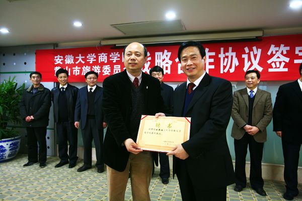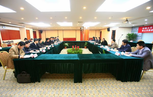 黄山是不仅是中国旅游的名牌,也是世界旅游的胜地。随着旅游业快速发展和国际国内旅游业融合互动,黄山旅游业已基本实现从单一的观光型向观光、度假、休闲复合型转变,迎来了重要的战略机遇期和黄金发展期。站在历史发展的新起点上,黄山旅游如何加快发展方式转变,真正实现旅游产业转型升级,成为代表中国旅游品质的标志性城市,建设现代国际旅游城市,加强黄山旅游研究就成为黄山旅游发展的必然选择。我校作为国家“211工程”重点建设高校和安徽省属重点综合性大学,一直以服务安徽经济社会发展为己任。此前,依托多学科综合优势,我校商学院与黄山市建立了良好的合作关系,承担了《黄山市“十二五”旅游发展规划》、《黄山市乡村旅游总体规划》等多项委托课题的研究,为建立全面合作关系打下了良好的基础。此次签订的战略合作协议,双方通过组建“安徽大学黄山旅游研究院”,建立“安徽大学商学院学生实习实训基地”、“黄山市旅游从业人员培训教育基地”和“双向互聘交流机制”等多种形式,形成长期稳定的全面合作关系,这对我校旅游管理专业在改革人才培养模式、加强科学研究、增强为地方服务能力等方面将发挥重要的推动作用。