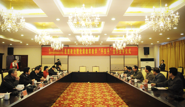 黄德宽说,民办高校重视思想政治理论教学对我们是一种促进和鞭策。随着改革开放的不断深入,中国有越来越多的年轻人走向世界。只有正确的价值观才能让年轻人积极向上地看待外面的世界,而如何树立正确的价值观,是高校不可推卸的责任和使命。因此,高校思想政治理论课应该在这个高度上去推动改革和创新。不但要让青年人从主流思政理论体系统中汲取养分,也要让他们从中国传统文化中吸取精华。思政理论课教学同时要摆脱旧面孔,摆脱无力的说教,走新路,用新招,利用多种手段,丰富教学形式。正是这种共同的责任和使命,使我们走到了一起。“手拉手”合作应该建立良好的合作机制,达到合作联动、携手创新、相互促进、共同发展的目标。
