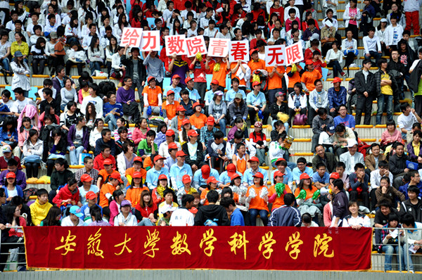 ∑,你知道这是什么数学符号吗?大写的∑用于数学上的总和符号,相信很多理工科的学生都并不陌生,给力的数学科学学院将穿红色衣服的同学在看台上摆成了一个鲜红的∑,代表着数学科学学院将集合全院之力给今年的运动会注入一股强劲之力,正如他们的口号那样:给力数院,青春无限。