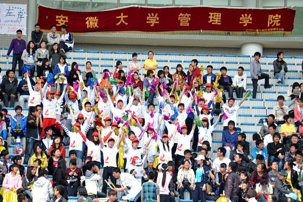 看看艺术学院可爱的学子们,他们把自己设计的加油LOGO,做成黄色的小贴纸贴在自己的脸上、胳膊上或是胸前,大声喊着:“凌波微步,艺院最酷,非比寻常,艺院最强!”他们延续着安大艺术学院不走寻常路的风格,以他们独到的创意Show出了自己的可爱。